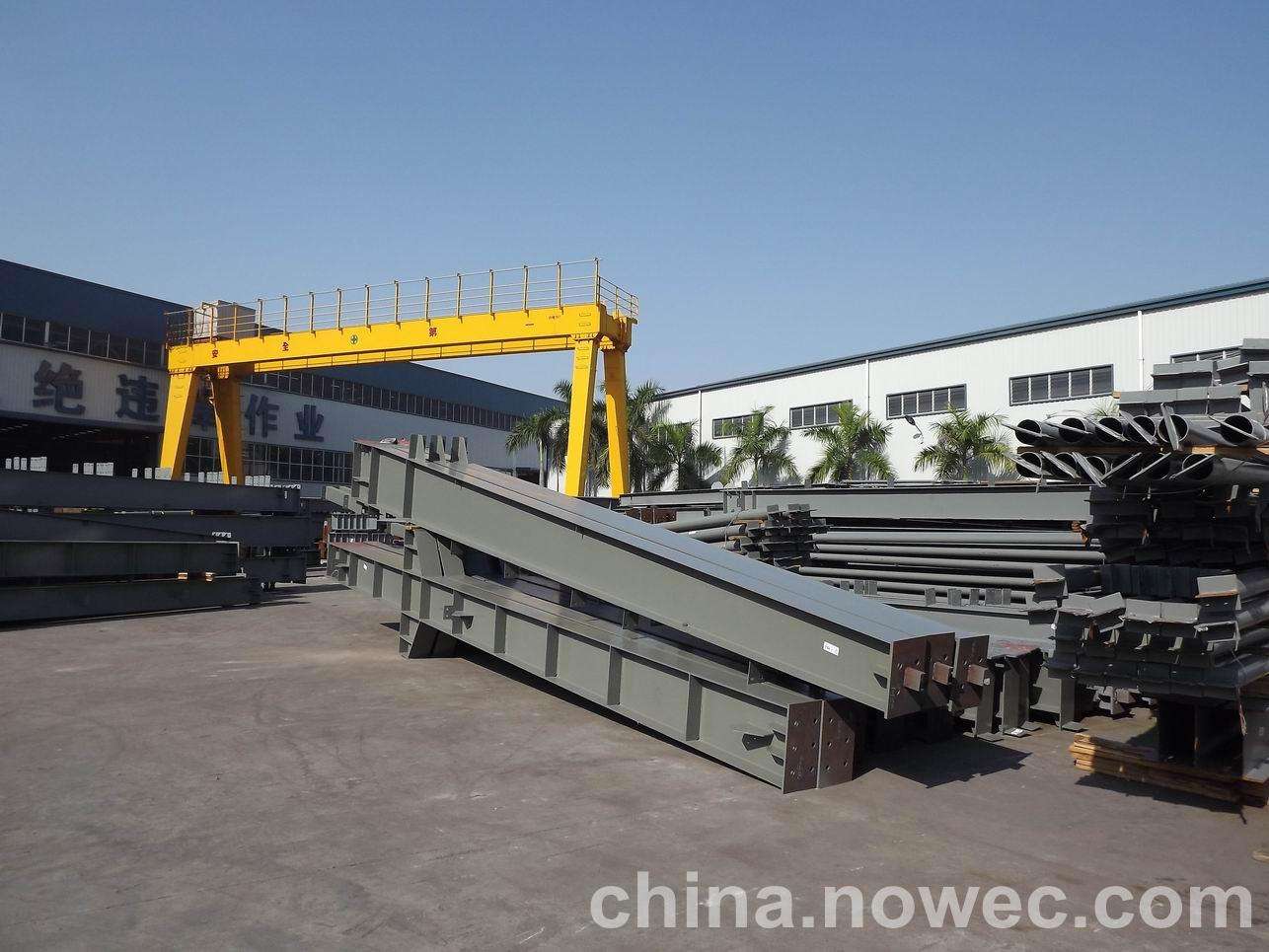 条状单元一般沿长跨方向分割,其宽度约为1~3个网格,其长度为l2或l2/2(l2为短跨跨距)。块状单元一般沿泉州网架平面纵横向分割成矩形或正方形单元。每个单元的重量以现有起重机能胜任为准。条(块)与条(块)之间可以直接拼装,也可空一网格在高空拼装。由于条(块)状单元是在地面拼装,因而高空作业量较高空散装法大为减少,拼装支架也减少很多,又能充分利用现有起重设备,故较经济。这种安装方法适用于分割后网架的钢度和受力状况改变较小的各类中小型网架,如两向正交正放四角锥、正放抽空四角锥等网架。